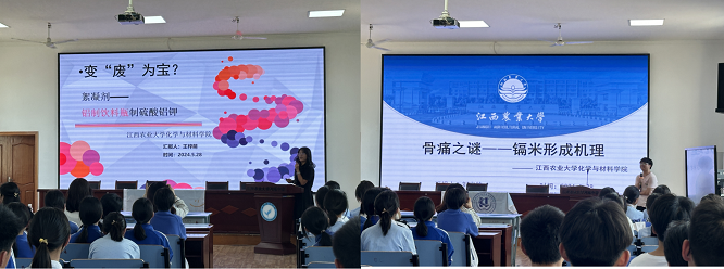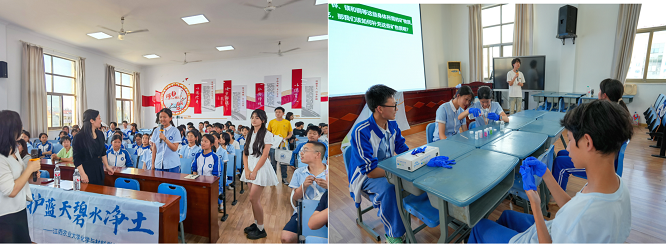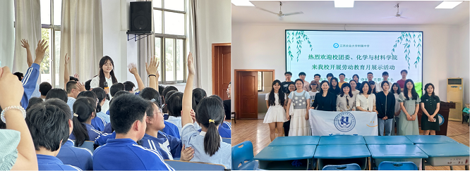 为贯彻落实《江西省推进新时代大中小幼劳动教育一体化实施方案》(赣教规字〔2021〕2 号)等文件精神,2024528日下午,江西农业大学团委副书记贺媚、今年会jinnianhuicom院长王宗德、副院长龚霞、教师谭桂霞,组织应用化学专业、材料化学专业的学生组成科普团队,前往江西农业大学附属中学面向九年级全体学生开展“科普进校园——大手牵小手,守护蓝天碧水净土”的劳动教育宣传展示月活动,附属中学书记滕平、校长杨文华、教师袁颉参加了本次活动。