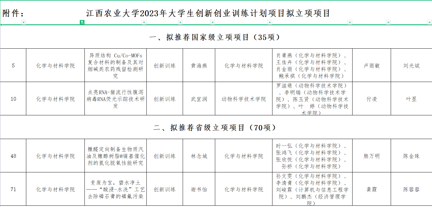 2023年4月8日,学校公布了2023年大学生创新创业训练计划项目评审结果,学校评审出国家级项目35项,省级项目70项,校级项目248项。今年会官网共有18个项目参与申报,11个项目获得立项,其中,国家级2项,省级2项和校级7项。卢丽敏和付凌老师获得国家级立项,熊万明和龚霞老师获得省级立项,张琳、刘长相、高艳莎、张晓华、聂旭亮、刘倩和刘书武7位老师获得校级立项。