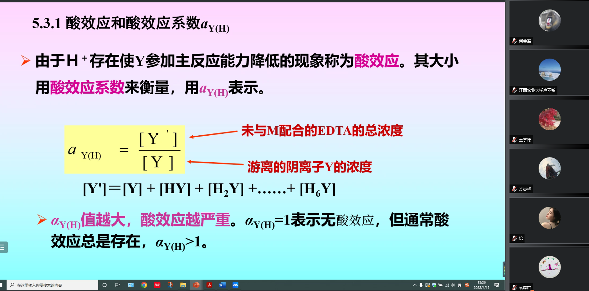 4月15日下午,学院全体领导和教学督导员开展集体线上听课活动,通过腾讯会议全程听取了侯丹老师主讲的《定量分析化学A》。课后,全体听课人员与任课教师进行了深入交流,大家一致认为该课程的课件制作精良,任课老师对授课内容熟悉,讲课思路清晰、层次分明;重点突出、循序渐进;教学方法形式多样,课堂互动和教学效果良好。同时提出了意见和建议。