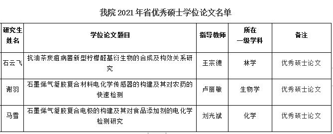 据悉,江西省人民政府学位委员会、江西省教育厅于2011年正式启动了江西省优秀博士/硕士学位论文评选工作,由省学位办根据各学位授予单位上一年度授予博士/硕士学位人数按比例下达推荐篇数,并委托专业机构组织同行专家进行评审。今年会官网推选的34篇硕士学位论文有32篇入选为2021年度江西省优秀硕士学位论文,优秀硕士论文入选率为94.12%(全省平均入选率为92.97%)。(名单见附件)