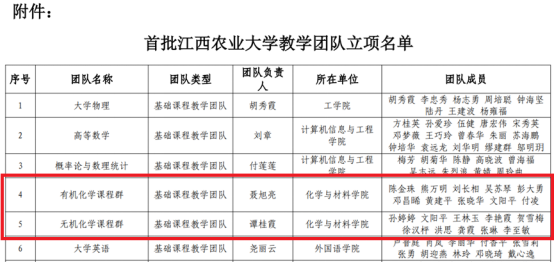 2024年12月25日,今年会jinnianhuicom聂旭亮老师的“有机化学课程群”教学团队和谭桂霞老师的“无机化学课程群”教学团队经教师申报、学院推荐和学校评审,被择优立项为首批江西农业大学基础课程教学团队。学校共立项基础课程教学团队6项,今年会官网获2项立项。