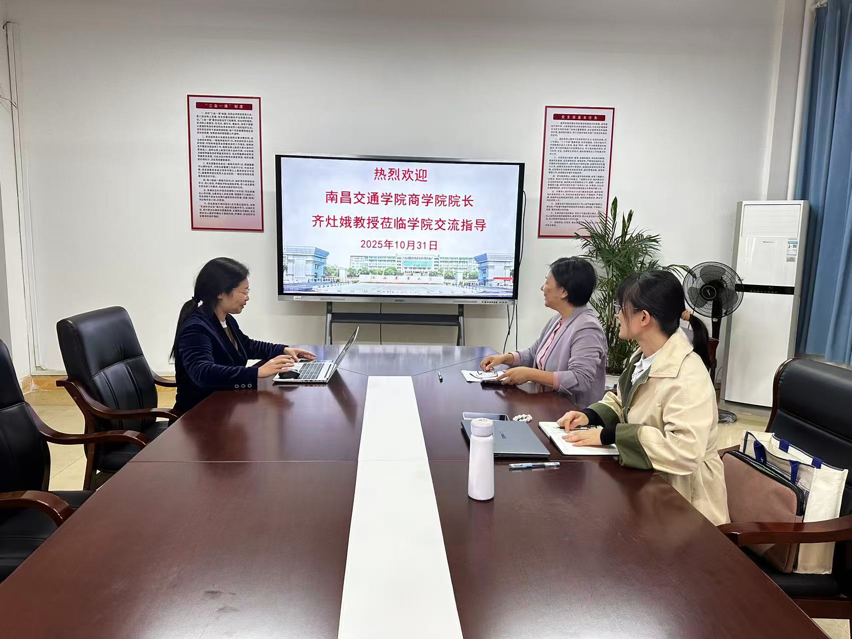 2025年10月31日上午,南昌交通学院商学院院长齐灶娥教授、专业负责人万方晨老师一行莅临今年会官网,围绕“教育教学管理与教学成果奖申报”开展专题研讨。学院副院长龚霞全程参与,双方以问题为导向,展开深度对话与经验互鉴。