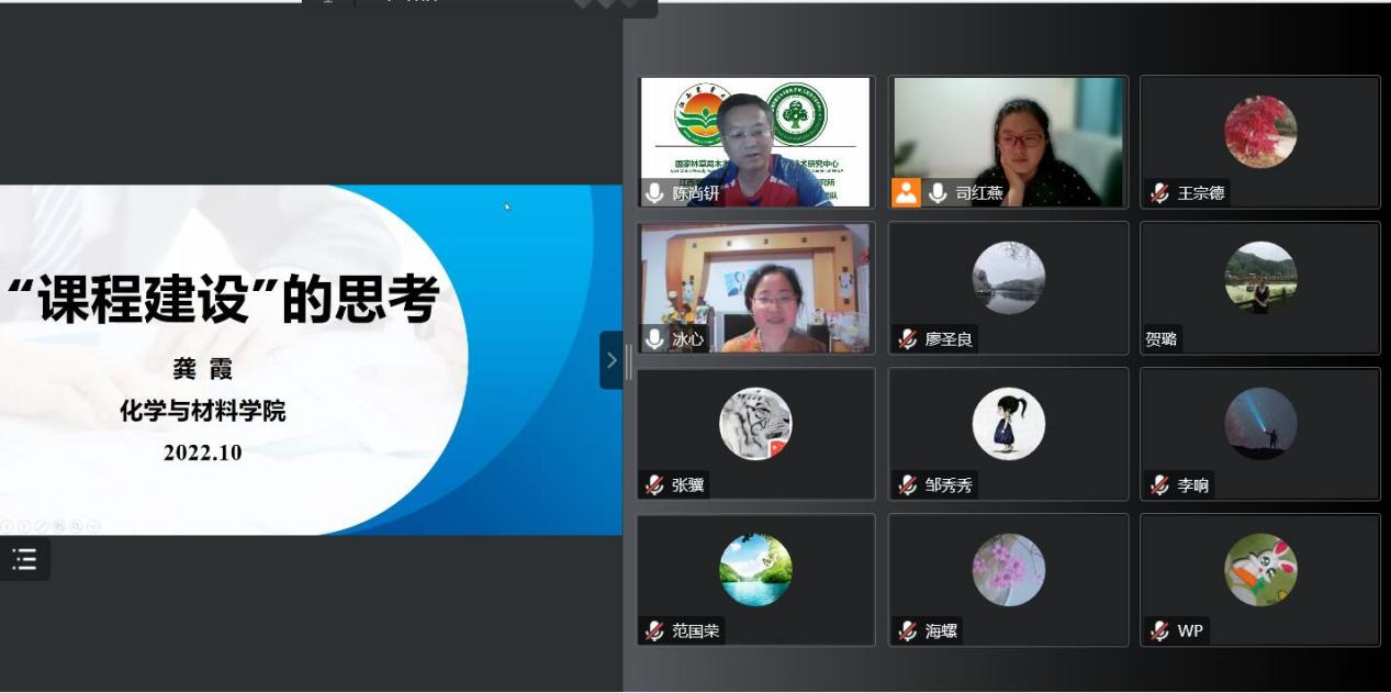 学院龚霞教授做了题为“‘课程建设的思考的专题报告报告用详实的数据图文并茂和深入浅出讲解了一流课程建设、课程思政建设、课堂实录和教学教研思考等四个方面的内容,并与参会老师就相关问题进行了深入探讨。随后,司红燕老师介绍香料化学与工艺学课程建设和一流课程申报情况,参会人员并就相关问题进行了分析商讨