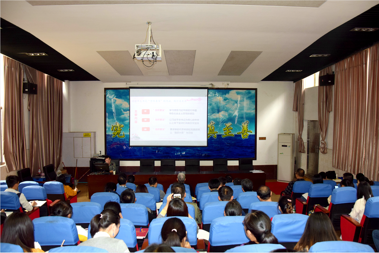 报告中,廖教授旁征博引,运用多个实例,围绕习近平新时代中国特色社会主义思想这一核心内容,从三个方面阐述了“情怀要深”的具体体现。一是体现在总书记提出的“为人民谋幸福、为民族谋复兴、为世界谋大同”的理念是深刻理解和全面把握习近平新时代中国特色社会主义思想的金钥匙;二是体现在以习近平同志为核心的党中央以上率下坚决打赢脱贫攻坚战的行动中;最后是体现在新时代农林高校的教师要以“强农兴农”为己任的使命担当中。