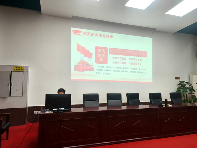 会上,学生党总支书记彭玉萌以“以廉洁家风涵养清风正气”为题,带领大家深入学习了家风的由来与传承、家风的新时代内涵和要求和新时代弘扬优良家风的实践要求,并组织全体人员一同观看了电视专题片《正风反腐就在身边》第四集《严正家风》视频。