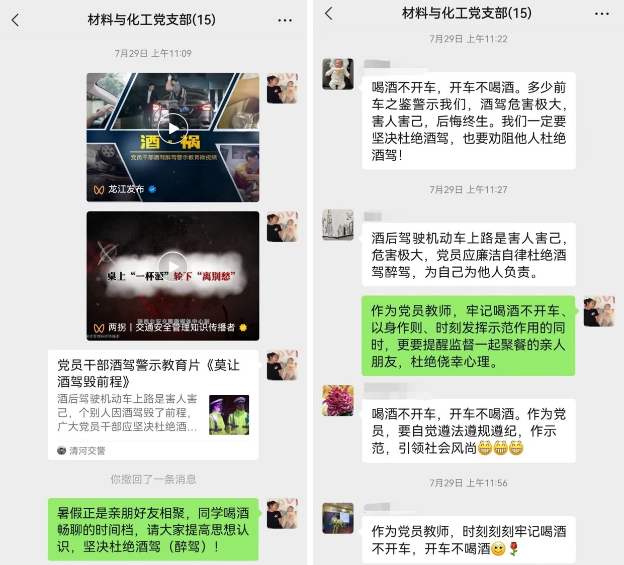 2023年7月29日,材料与化工支部开展题为“党员干部职工酒驾警示教育”的主题党日活动。