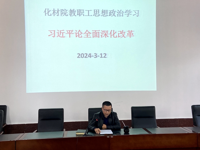 2023年3月12日14:10,学院在致学楼阶梯报告厅召开学院教职工大会,开展了教职工3月份思想政治学习。