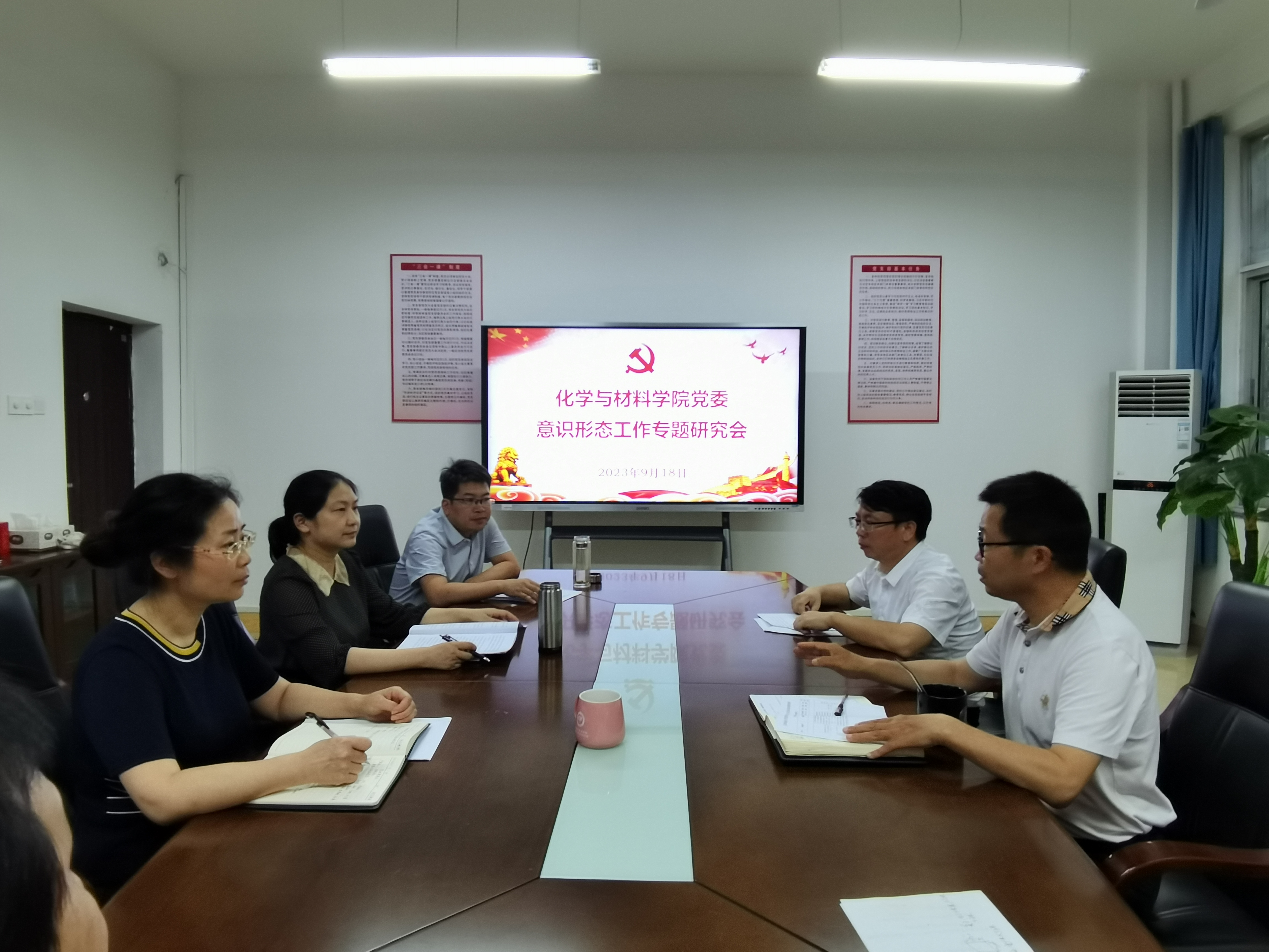 20239189:00,学院党委意识形态工作专题研究会在致理楼215会议室召开。学院全体党委委员参会,副院长龚霞及相关行政人员列席会议,会议由学院党委书记刘庆言主持。