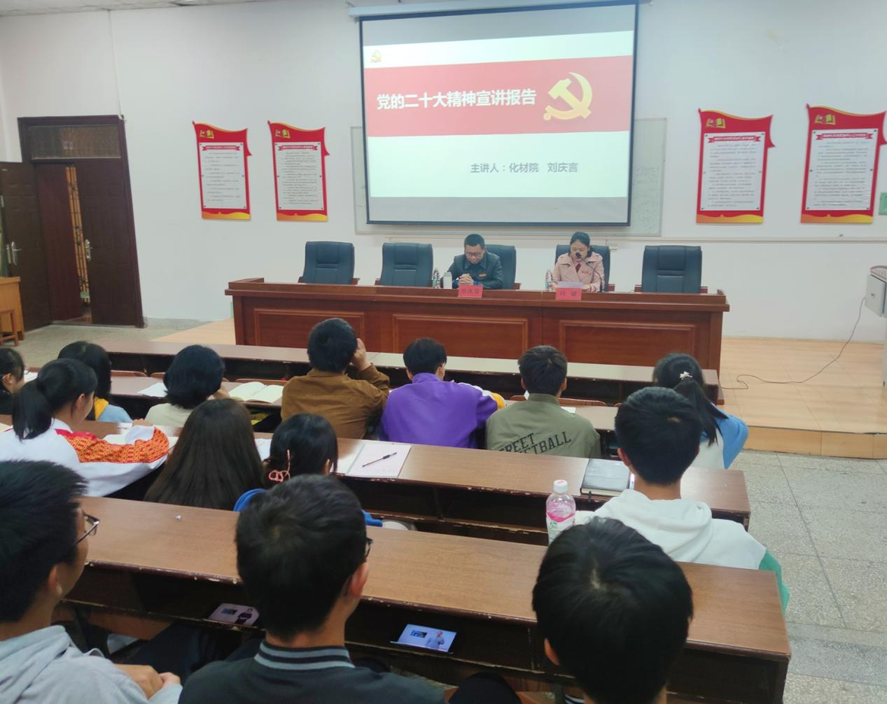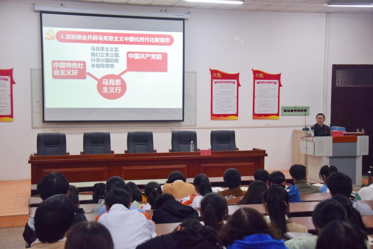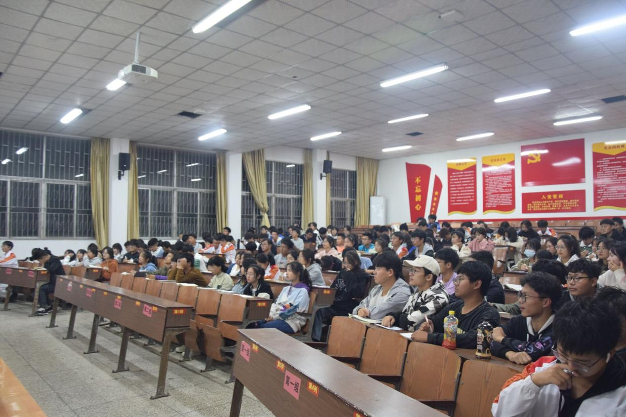 为深入学习宣传贯彻党的二十大精神,更好地推动党的二十大精神进校园、进班级、进课堂,同时扎实开展好新生入学教育、为新生上好专题党课,2022年11月4日晚上7点,今年会官网于一教惟义楼党校教室举办党的二十大精神宣讲报告会,报告会由学院党委书记刘庆言主讲。学院党委副书记叶健、辅导员及182名新生参加报告会。