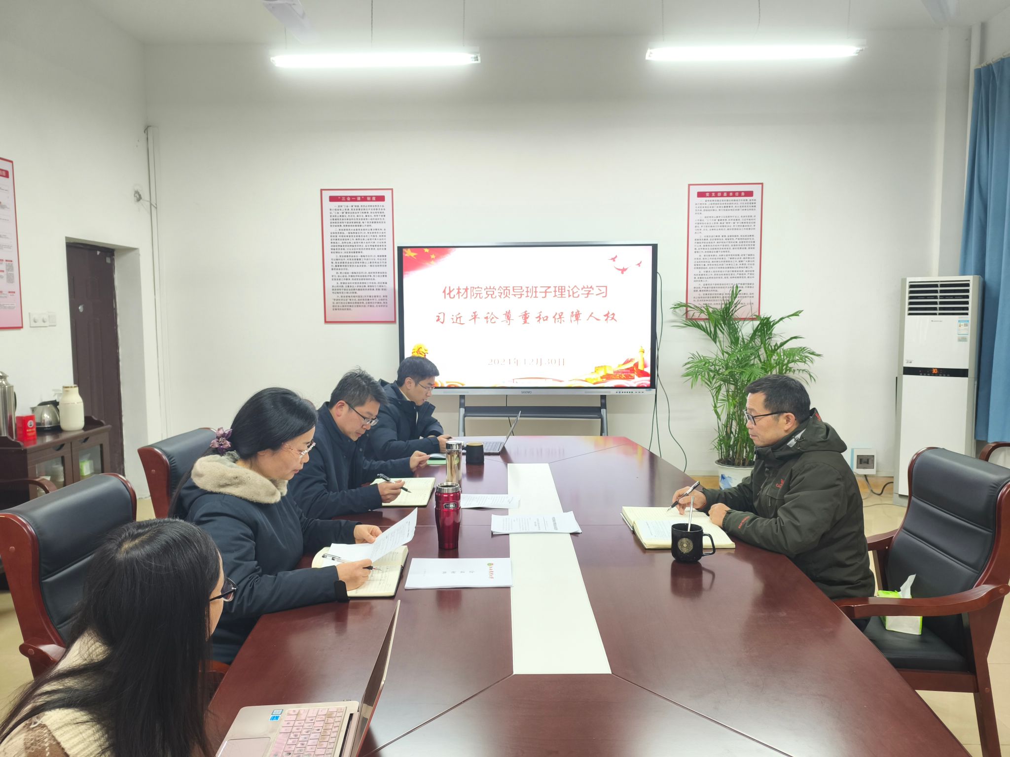 会上,彭玉萌组织大家一起学习了习近平总书记《论尊重和保障人权》有关内容,班子成员分别结合个人工作实际分享了学习心得体会。
