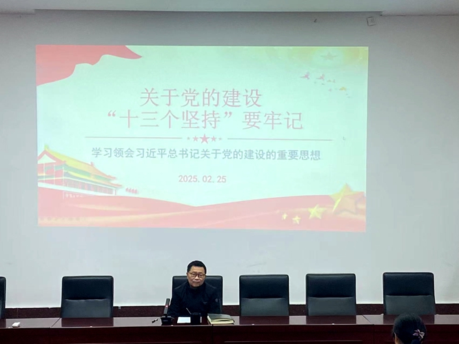 学习会上,院党委书记刘庆言以《关于党的建设“十三个坚持”要牢记》为题,组织全体教职工一起认真学习了习近平总书记关于党的建设的重要思想。