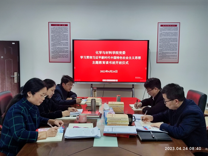2023年4月24日上午,学院党委在致理楼215会议室举行主题教育读书班开班仪式。全体党政领导参会,学院党委书记刘庆言主持会议。