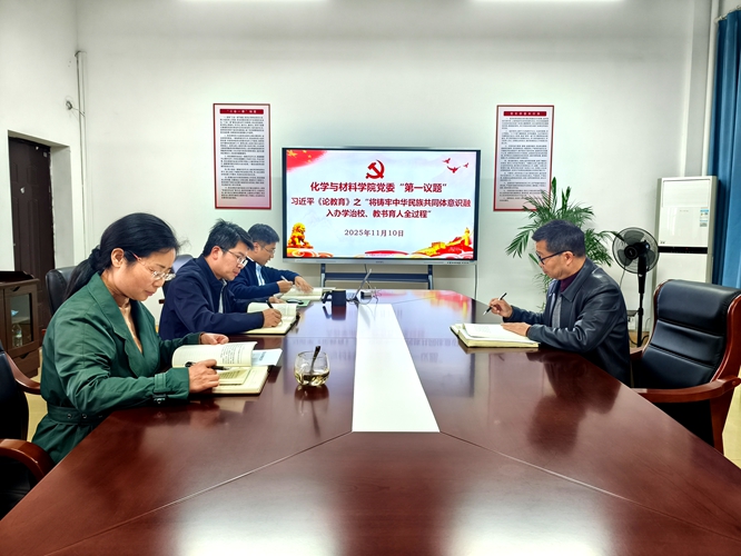 会议强调,化材院要落实立德树人根本任务,把铸牢中华民族共同体意识教育贯穿教书育人全过程,培养政治坚定、素质过硬、德智体美劳全面发展的社会主义建设者和接班人。