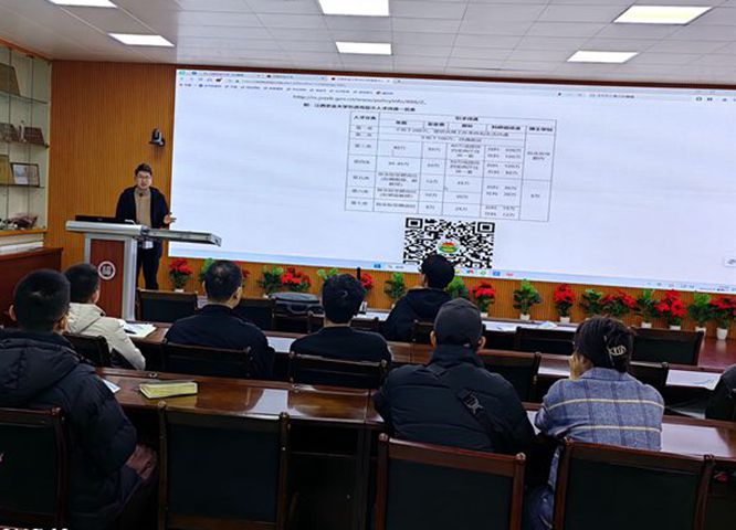 学术交流后,卢院长给2024届博士生做引才招聘宣讲报告,宣讲会上,卢院长详细阐述了今年会官网的引才优惠政策以及化材院的发展情况,鼓励和欢迎优秀学子到江西农业大学来贡献才智。