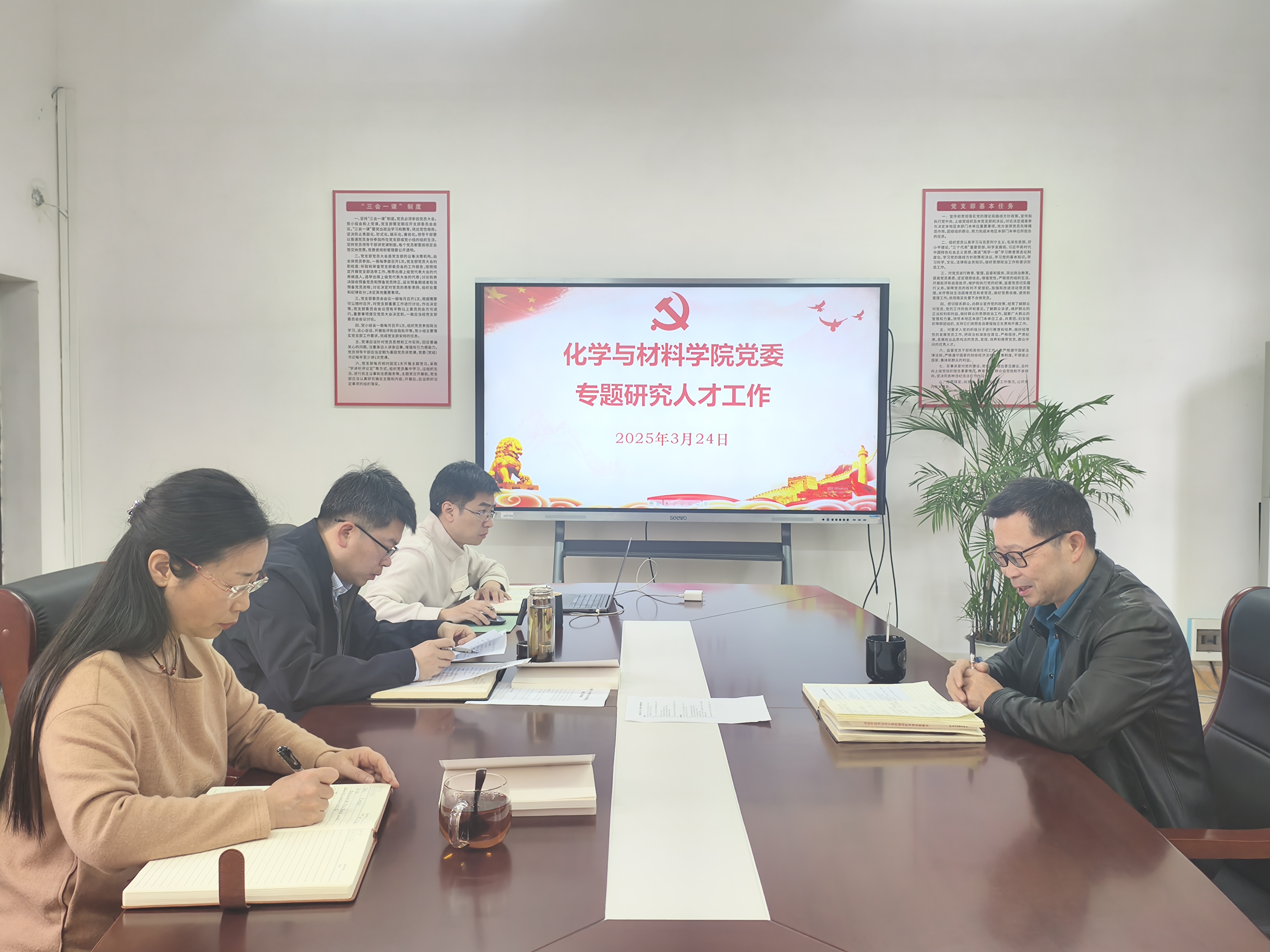 2024年3月24日9:00,学院党委召开会议,专题研究人才工作。副院长、九三学社社员龚霞及学生党总支书记彭玉萌列席会议,会议由学院党委书记刘庆言主持。