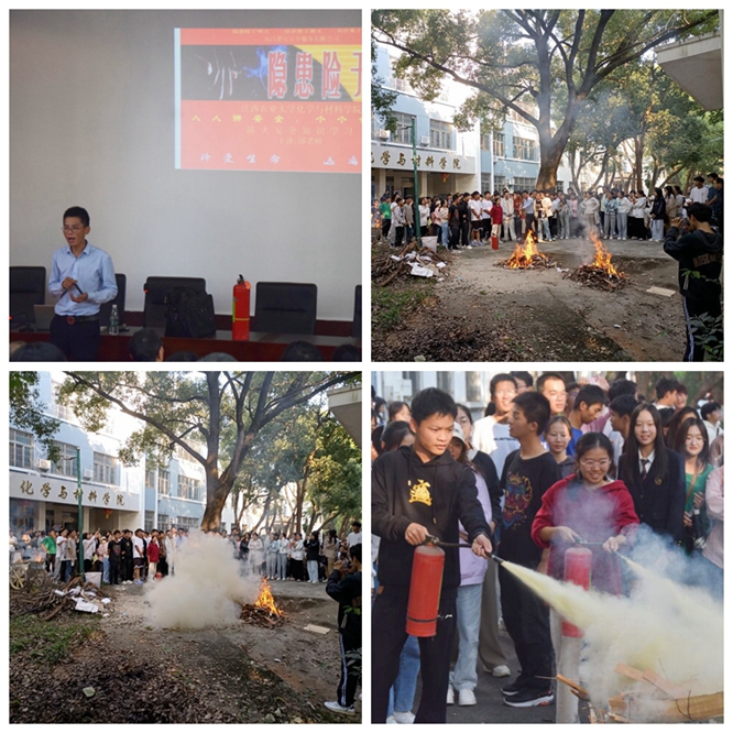 20231024日下午,学院举行消防安全讲座和消防安全演练,邀请南昌市消防培训机构邱增耀讲师在学院学术报告厅为全院师生开展消防安全知识培训,随后在室外进行了灭火器使用的现场演练,全体教工和200多名2023级学生和全体研究生参与了演练。