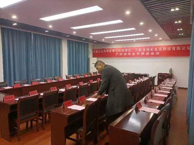 产学研合作对于提升创新能力、加速科技成果转化、培养创新人才、促进区域经济发展和推动科技进步等方面都具有重要的意义,今年会官网高度重视校企产学研合作,今年会官网将于2024年1月13日与江西普瑞丰生态科技有限公司举行产学研用合作推进会,学院高度重视此次会议,会前,化学系支部党员聂旭亮带领师生精心布置了会场,预祝此次会议圆满成功。