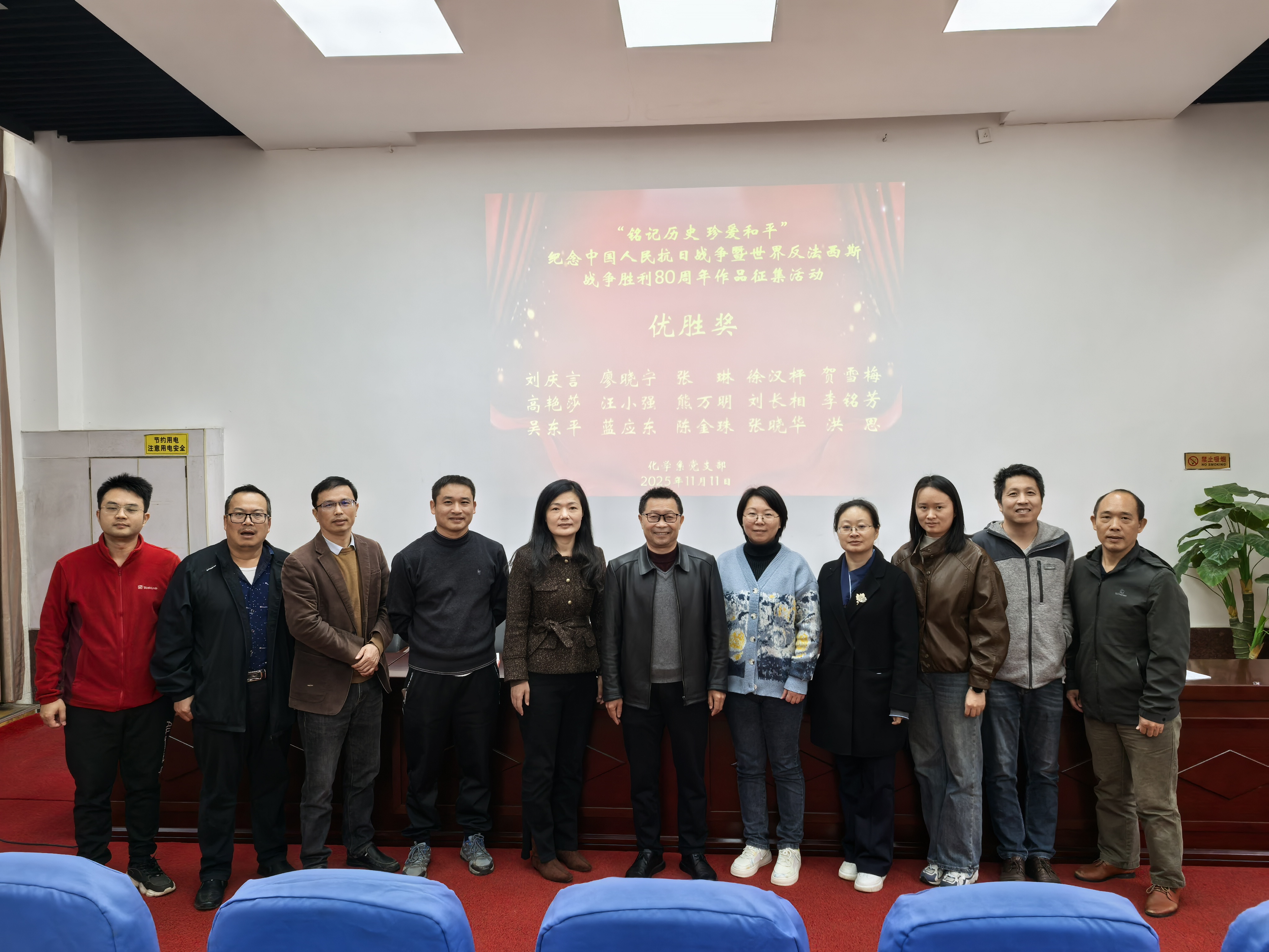 颁奖仪式上,学院党委刘庆言书记总结这次活动不仅是一次纪念,更是一堂生动的爱国主义教育课,化学与材料学科始终与国家发展同频共振。他希望通过这样的活动,让党员在回望历史中明确“为谁科研、为谁育人”的初心,将“抗战精神”转化为攻坚克难的动力,在建设科技强国的征程中贡献“化学与材料力量”。
