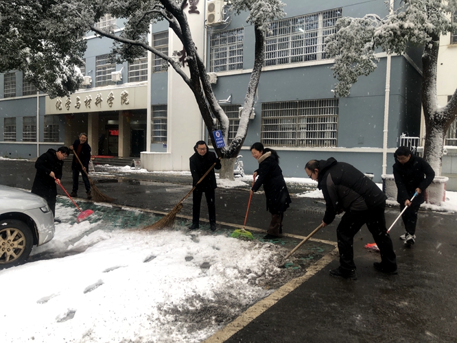 活动中,大家热情高涨、干劲十足,带着铁锹、扫帚等工具,迎着纷飞的大雪,卖力地将路面的冰雪清除。通过齐心协力地劳动,学院办公楼及实验楼周边主干道的积雪被清理干净,切实消除了安全隐患,为来往师生扫清了方便之路,得到师生一致认可。