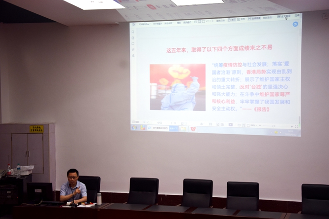 为深入学习贯彻党的二十大精神,在全院学生中掀起学习党的二十大精神热潮,2023422930,学院党委书记刘庆言为全体学生党员讲授题为《为全面推进中华民族伟大复兴而团结奋斗》的专题党课,学院全体党员聆听党课。