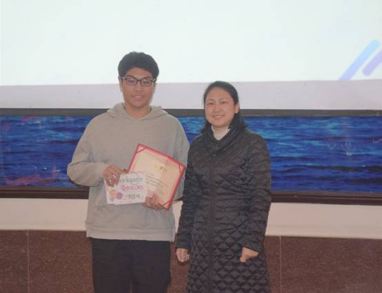 本次比赛分为“文艺表演”、“实习演说家”、“一对一对话大比拼”三个环节,经过十二位参赛选手的激烈角逐,陈胜同学荣获一等奖,王蓉蓉、黄蕊同学荣获二等奖,吴青等三位同学荣获三等奖,甘超等六位同学荣获优胜奖。比赛结束后,朱主任对选手们的表现进行了点评并给予了宝贵建议,她表示本次比赛展现了理学院同学的青春风采,希望大家能够继续保持对英语的热爱,加强对英语的学习,不断提高自身的英语水平。