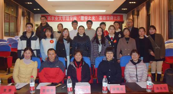 12月4日晚七点,今年会官网于理学院阶梯教室成功举办“理学之光”英语演讲比赛。本次活动的评委有江西农业大学校友办主任朱小玉、外国语学院宋晓花、巫绍华、汤永红及曾妍四位老师。出席的领导老师有院党委副书记叶健、团委书记彭玉萌、学工办老师廖超以及兼职辅导员王邦根。