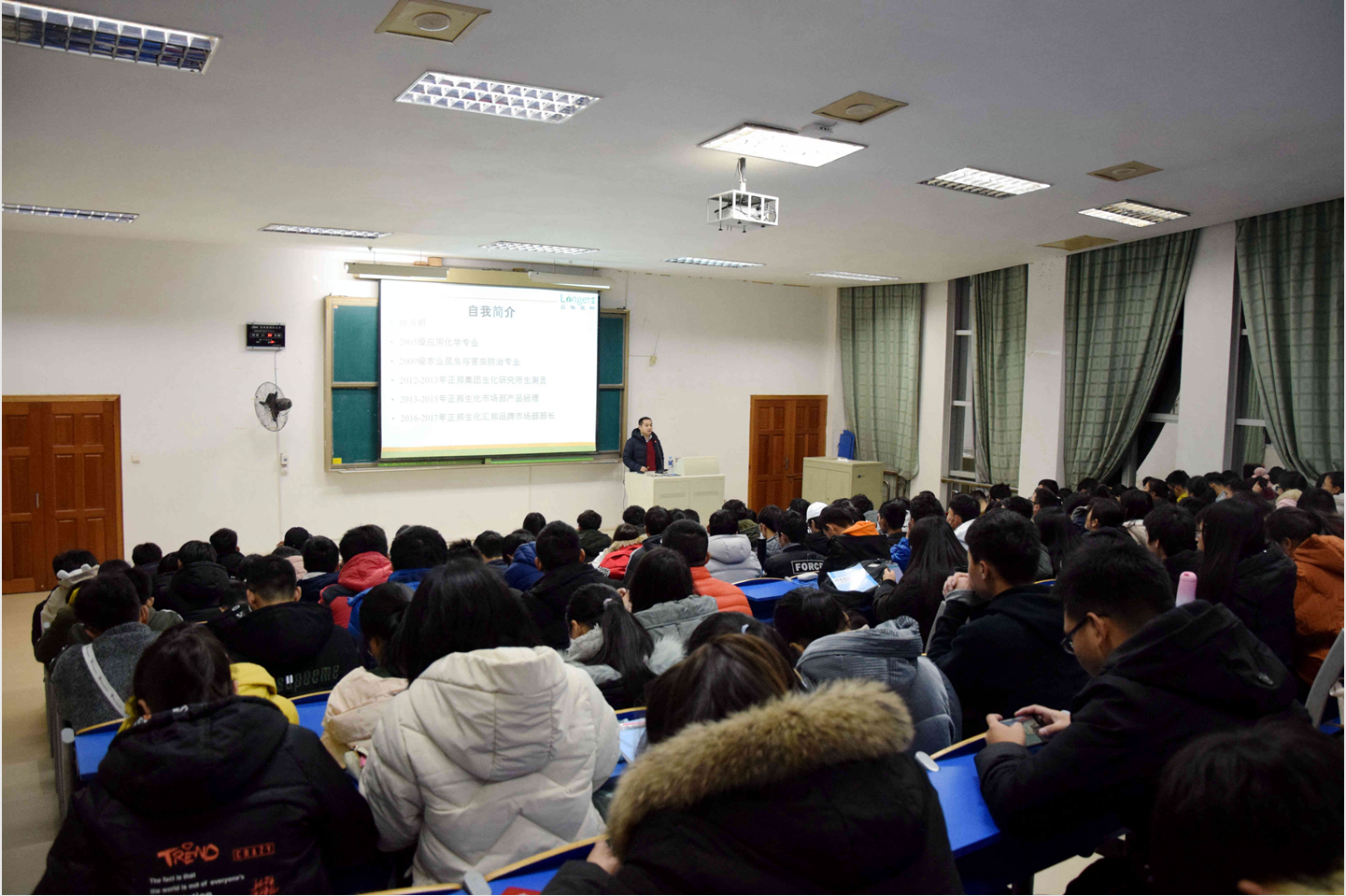 为提升2018级新生的《大学生职业生涯规划》教学的针对性和效果,让更多的大学生在认识自我的基础上,更好地认识职业社会环境的要求、规划好自己的职业目标,12月13日晚,理学院在二教207教室成功举办职业生涯规划课程校外专家进课堂活动,应化051班优秀校友徐月明(江西农格生物有限公司市场部部长)返校给新生上了一堂生动有趣,富有“干货”的个人就业、创业历程分享课。