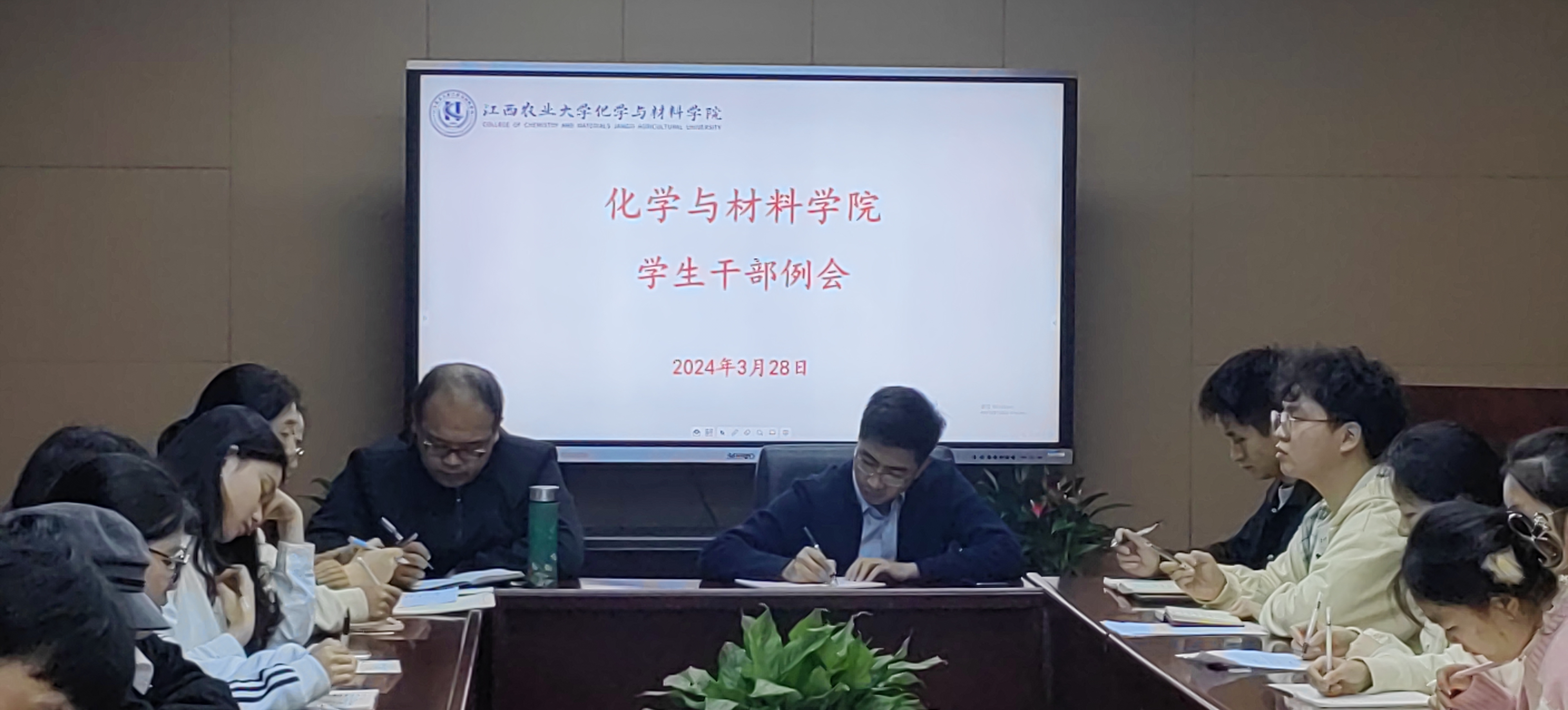 为进一步推进本学期学生工作落实,2024年3月29日18:30,今年会官网在院办214室召开学生干部大会,学生党总支书记彭玉萌、全体辅导员、各学生组织负责人参加会议。