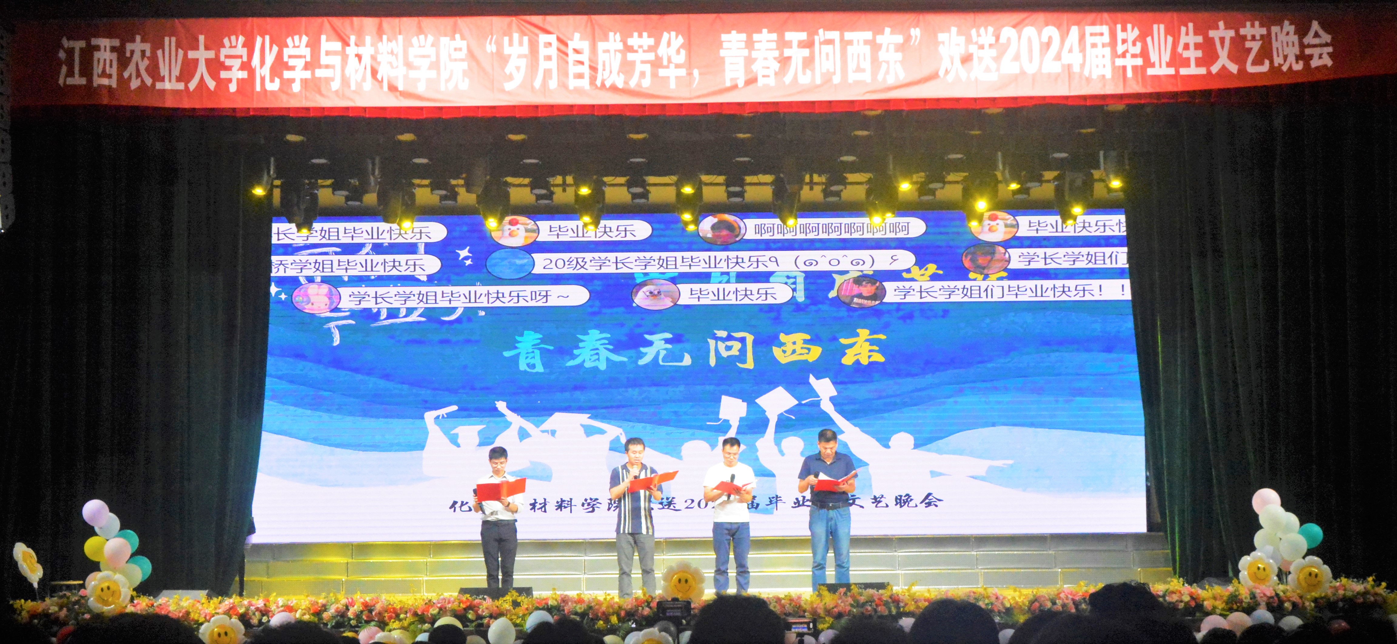 四年前我们迎着炎热共聚江农,四年后我们伴着短暂的清凉各自迎接酷暑,疾风暴雨骤停的夜晚,凉风轻抚着我们,似乎也在感受我们的不舍20245117点,校大礼堂灯光璀璨、气氛热烈,今年会官网“岁月自成芳华,青春无问西东”欢送2024届毕业生文艺晚会在此隆重举行。学院党政领导、全体毕业班班主任、辅导员及全体学生参加晚会。
