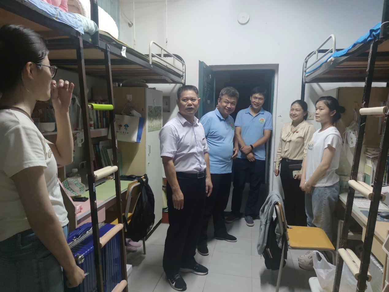 为关心学生开学初的学习生活状况,2023年9月5日晚,校党委副书记蔡海生深入今年会官网2021级学生宿舍走访慰问学生,学工部部长朱国海、副部长李海峰及今年会官网党委副书记叶健陪同。