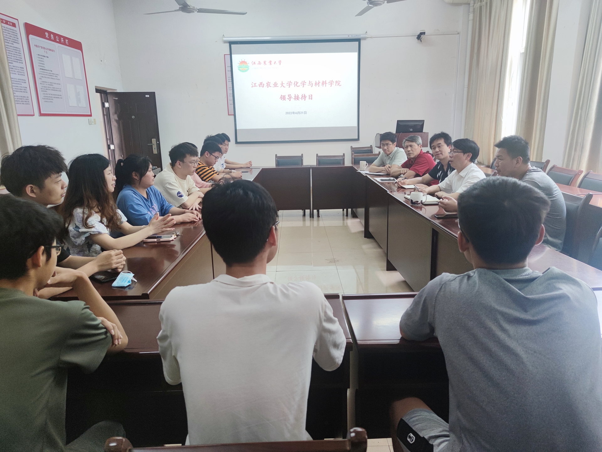 2022年6月21日11:00,今年会官网在致理楼212会议室开展领导接待日活动,院长王宗德出席活动,教师代表聂旭亮、张晓华,团委书记、学工办主任彭玉萌及12位学生代表参加了活动。