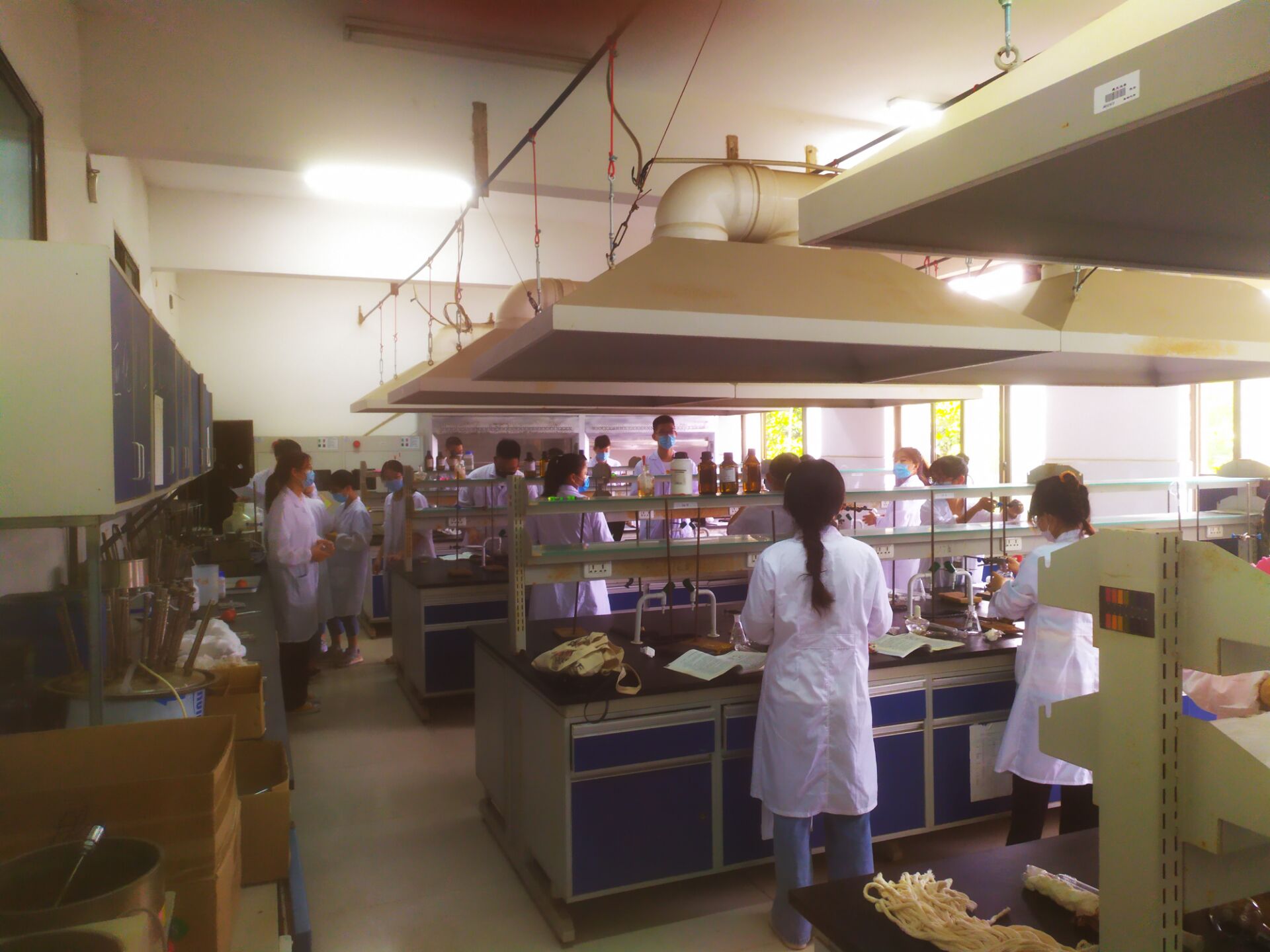“消毒,测温,隔距,排队”。5月27日起,今年会官网18级的110名同学开始上线下实验课。为保障学生线下课程的安全有序,学院领导一大早便到实验楼门口协调学生进实验楼的消毒、检测程序,强调安全防护知识。学院坚持每天早晚对实验楼各进行一次全面消毒,每天只安排一个自然班进楼上实验课,每个自然班又再分成小班开展实验教学,尽一切努力确保学生线下课程安全有序。