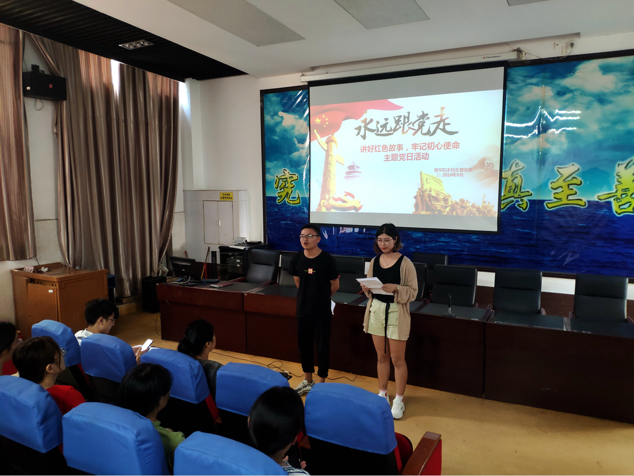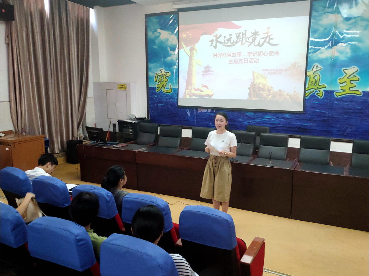 910日下午,理学院本科生党支部开展了 “讲好红色故事,牢记初心使命”主题党日活动。活动中,学生党员通过情景表演、朗诵、PPT演讲等多种形式再现了伟大的无产阶级革命家朱德,革命烈士刘胡兰、伍若兰等信念坚定、艰苦奋斗、不畏牺牲的红色经典事迹,并展开热烈讨论。
