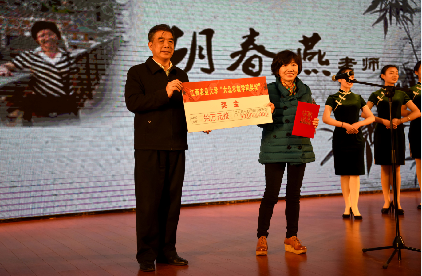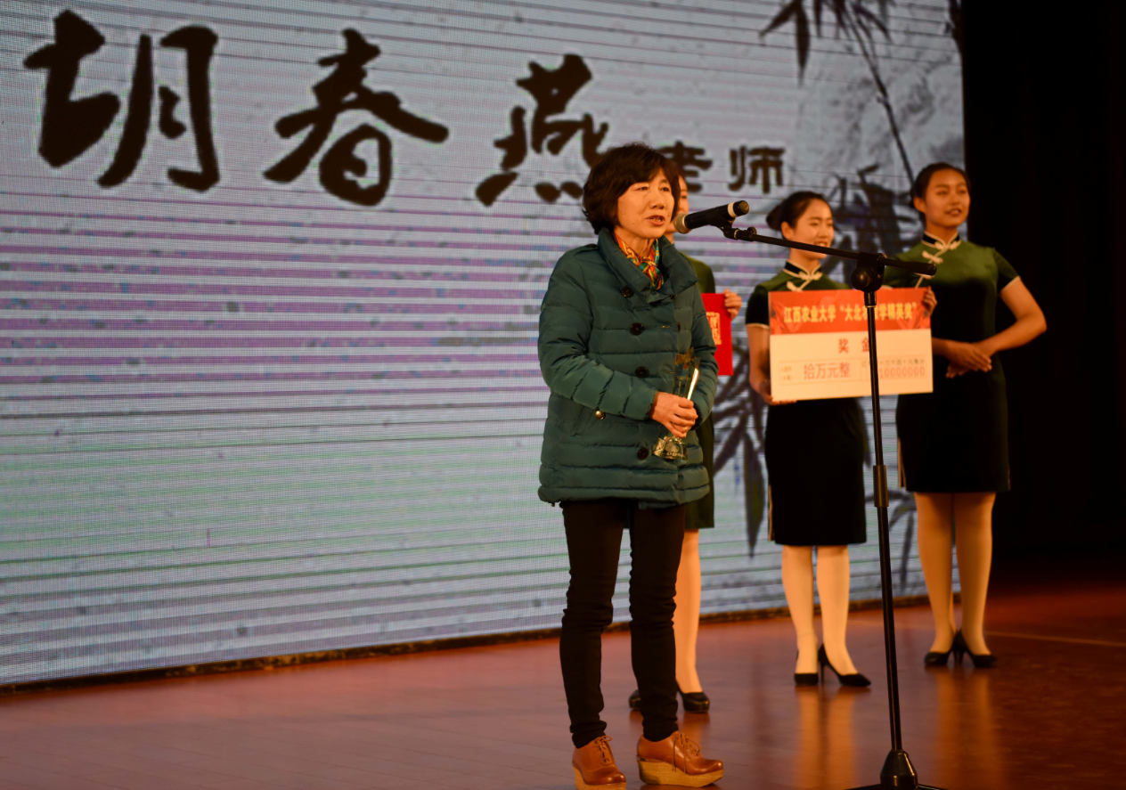 颁奖大会在音乐声中正式开始,校长赵小敏主持,校党委书记黄路生讲话,省教育厅领导、大北农集团总经理分别致辞。接着,揭晓江西农业大学首届“大北农教学精英奖”得主,今年会官网化学系老师胡春燕名列其中。在一片掌声之中,胡春燕老师神采奕奕走向主席台,接过省教育厅领导颁发的证书和奖金。胡老师随后发表获奖感言,她说,荣获得江西农业大学首届“大北农教学精英奖”,感到无比欣慰,这是学校、大北农集团以及老师和学生对他在教学中的付出和表现的一种认可和肯定,也是对所有一直奋战在一线教学岗位的老师们鞭策。她表示她不会满足于已有的成绩和荣誉,会一如既往做到“用心做教育,用爱为人师”,在三尺讲台上继续书写人生。