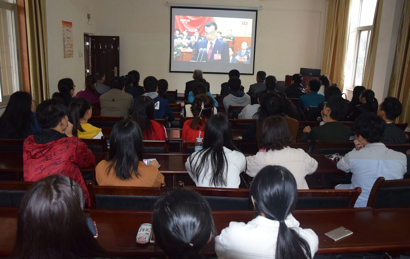 1018日上午中国共产党第十九次全国代表大会在人民大会堂隆重召开。理学院师生党员40余人在研究生教室集中收看十九大开幕会。