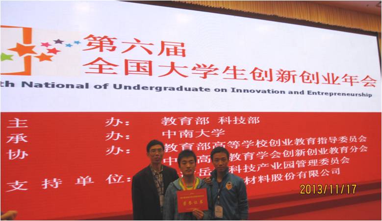 2013年11月15日至17日,第六届全国大学生创新创业年会在湖南长沙中南大学举行。由今年会官网刘光斌老师指导,本科生陈伟等同学完成的学术论文《野生能源物—东京野茉莉制备生物柴油》成功入选入选本次大学生创新学术年会。今年会官网刘光斌老师、校学工处陈家兴老师和2010级陈伟同学代表学校出席大会并做了交流报告。教育部、科技部相关领导出席大会并致辞。