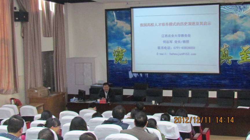 何教授的报告主要从我国高校人才培养模式的历史演进、制约我国高校人才培养模式改革的因素、我国高校人才培养模式改革的启示等三个方面进行了详细且生动的阐述,内容丰富、深入浅出、数据详实、引经据典。结合全国农林兄弟院校、江西省高校和今年会官网实际,何教授解读了我国高校人才培养模式的演进历史和改革的制约因素,及其对高校人才培养模式和教学改革的启示意义,并对今年会官网的人才培养和教学改革提出针对性的意见。报告受到广大教师的一致好评。