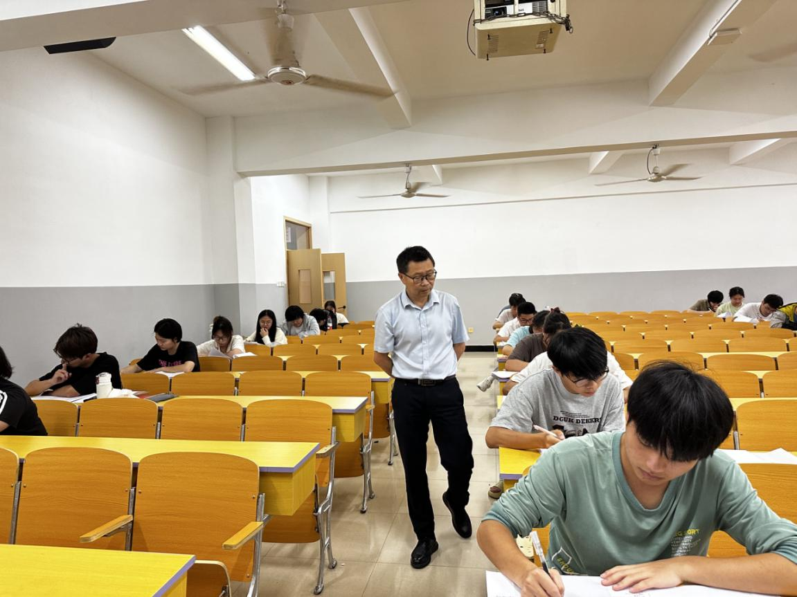 为加强期末考试的组织管理,扎实推进考风、学风建设,2025年6月24日,学院党委书记刘庆言深入考场巡视,检查考风考纪。