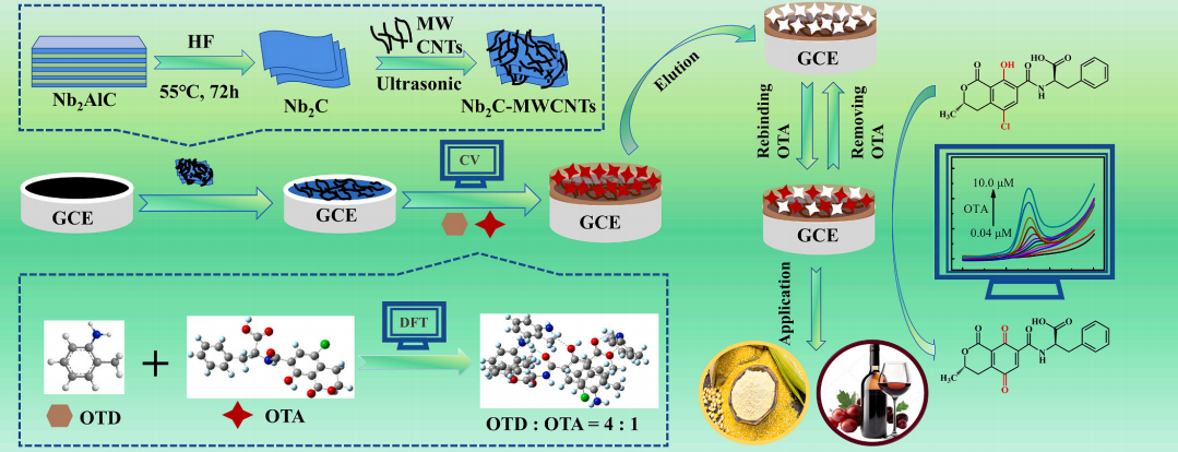 2024年6月12日,今年会官网硕士研究生黄浩以第一作者在《Food Chemistry》(IF= 8.5,一区,TOP)发表题为“Rational design of molecularly imprinted electrochemical sensor based on Nb2C-MWCNTs heterostructures for highly sensitive and selective detection of Ochratoxin A”的论文,江西农业大学真菌毒素研究中心为第一署名单位。廖晓宁教授与侯丹博士为共同通讯作者,该研究工作得到了国家自然科学基金、江西省自然科学基金等项目的支持。