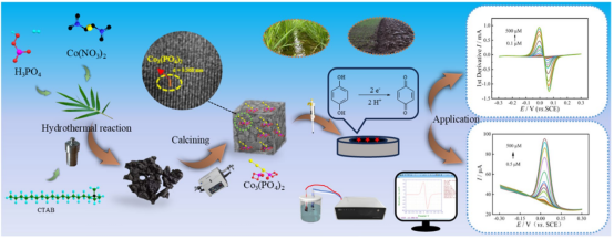 对苯二酚(HQ)作为化工、农药生产的关键中间体,其残留可导致水体生态毒性与人体健康风险。传统检测技术如气相色谱需高温衍生化,难以适应现场快速分析。创新性地将Co3(PO4)2引入生物炭骨架,通过磷酸活化与阳离子表面活性剂(CTAB)扩孔双重改性,电化学活性位点密度提升4.7倍。所构建的CoCPBC/GCE传感器结合一阶导数伏安法,将HQ的检测限降至 0.052 μM,较传统伏安法灵敏度提升 4.4 倍,线性范围覆盖0.1-500 μM,满足地表与土的质量标准检测需求。通过氮气吸附-脱附、X射线衍射(XRD)及高分辨透射电镜(HRTEM)分析证实:Co3(PO4)2以纳米颗粒形式均匀分布于生物炭孔隙中,其(100)晶面暴露的Co²⁺活性位点加速了HQ的氧化还原动力学。在稻田水与土壤实际样品检测中,加标回收率达95.73-99.53%,RSD≤3.42%。该技术将导数伏安法与生物炭基材料结合,通过信号放大效应解决了复杂基质中痕量污染物检测的信噪比难题,为环境应急监测提供了便携化技术支撑。